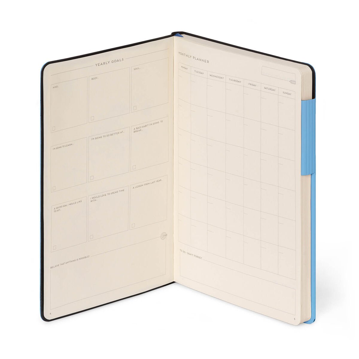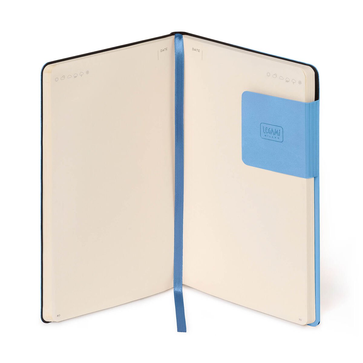 My Notebook Large Retro Blue de páginas blancas es el cuaderno de Legami perfecto para registrarlo todo sobre ti: apuntes, secretos, viajes, números, cotilleos, etecé, etecé.