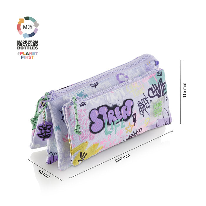Portatodo cuádruple. Composición exterior de RPET (poliéster reciclado). Forro interior de poliéster.