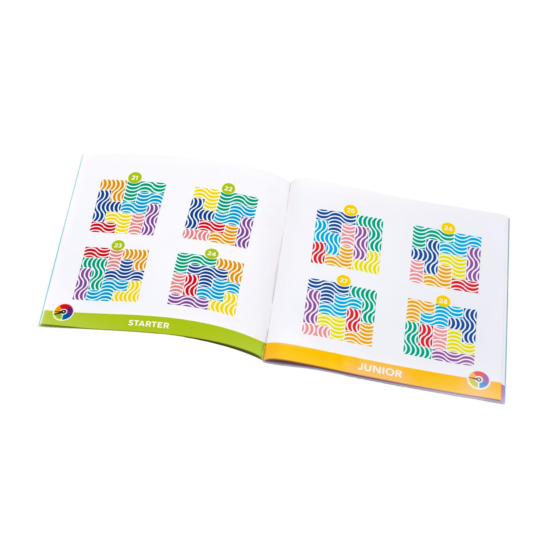 IQ Flow es un rompecabezas deslizante que desafía tu habilidad espacial y capacidad de planificación. Desliza las 8 piezas con forma de Tetris desde los bordes para completar el cuadrado central en cada uno de los 120 retos únicos incluidos. Cada desafío tiene una sola solución, que encontrarás al final del libro.