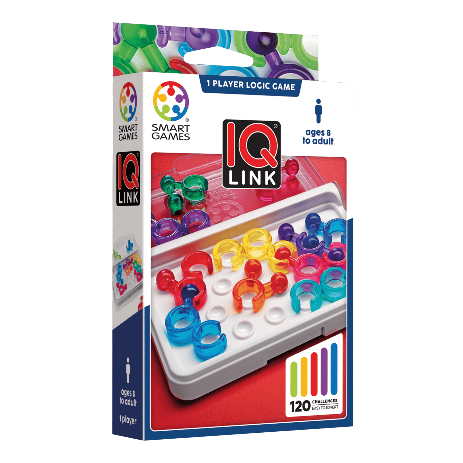 Cuidado! En IQ Link hay 36 piezas del juego y sólo 24 espacios libres en el tablero. Las anillas y las bolas de piezas distintas pueden ocupar el mismo lugar cuando las enlazas de forma correcta. IQ-Link es un entretenido juego de viaje compacto y el juego de ingenio más enigmático.