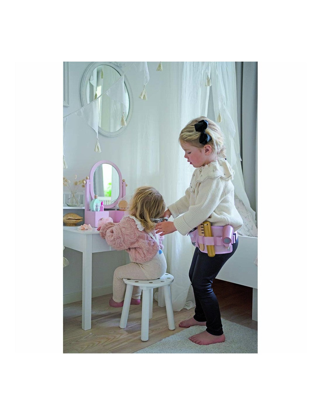¡Abre tu salón de belleza particular! Con este cinturón de peluquería todo en uno, tendrás acceso a herramientas profesionales para crear peinados increíbles. Incluye secador, plancha, tijeras, peine, clips y spray para el cabello. El cinturón ajustable mantiene todo organizado y a mano mientras trabajas. Perfecto para experimentar con cortes atrevidos, ondas elegantes o estilos locos sin límites. ¡Solo tu imaginación decide qué peinado es el siguiente!