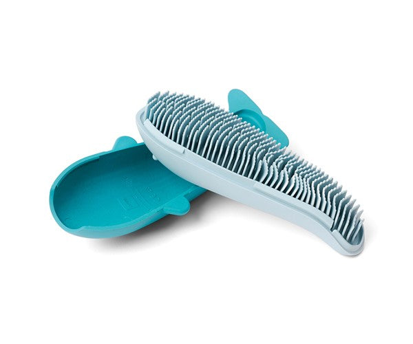 Kuji está equipado con un cepillo sensorial que permitirá a los niños lavarse, cepillarse, pero también desarrollar su motricidad fina a través de la percepción táctil.