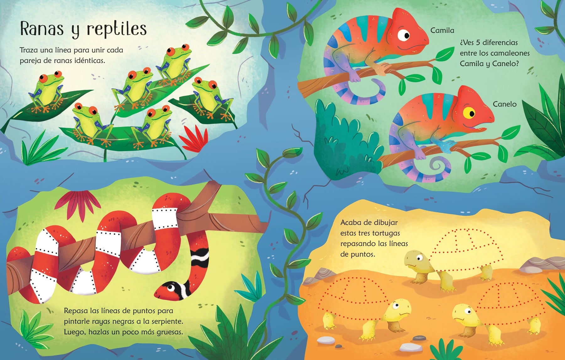 Libro pizarra con actividades inspiradas en el zoo. Busca las diferencias, une los puntos, laberintos y concursos de preguntas, entre otras actividades para que los niños se entretengan durante horas.