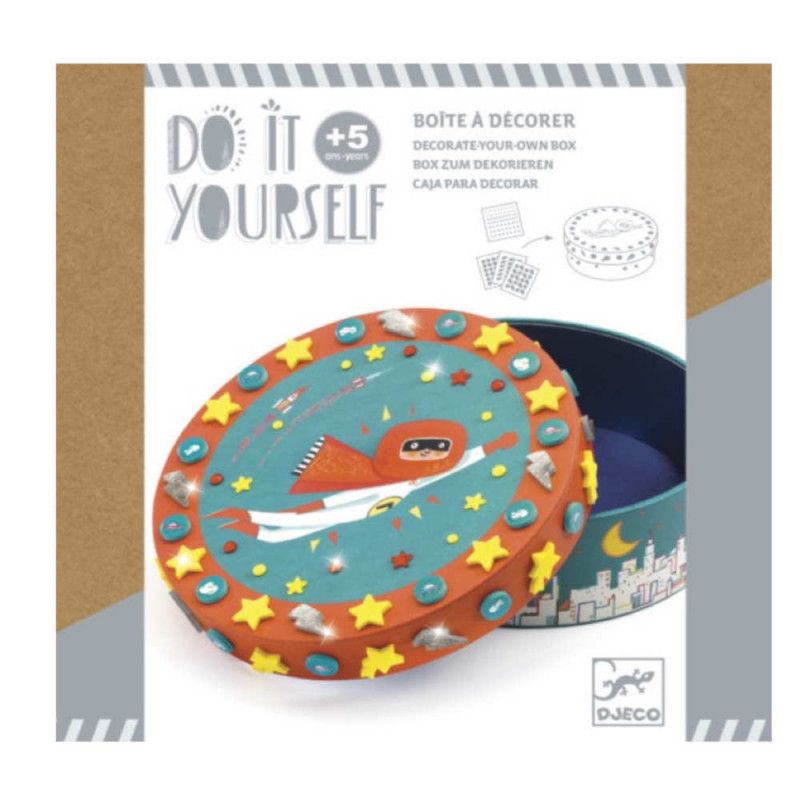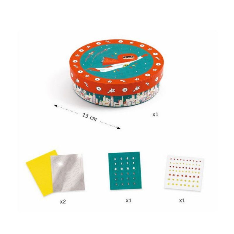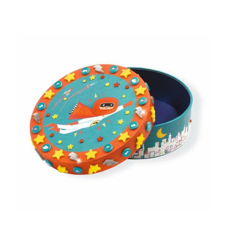 Esta caja DIY para decorar es perfecta para que los más pequeños den rienda suelta a su creatividad. Con coloridos mosaicos autoadhesivos y pegatinas brillantes, podrán personalizarla fácilmente mientras se divierten. Ambientada en un superhéroe, es ideal para guardar sus pequeños tesoros o sorprender regalando algo especial. Un proyecto divertido que además decora cualquier rincón con un toque único y lleno de color.