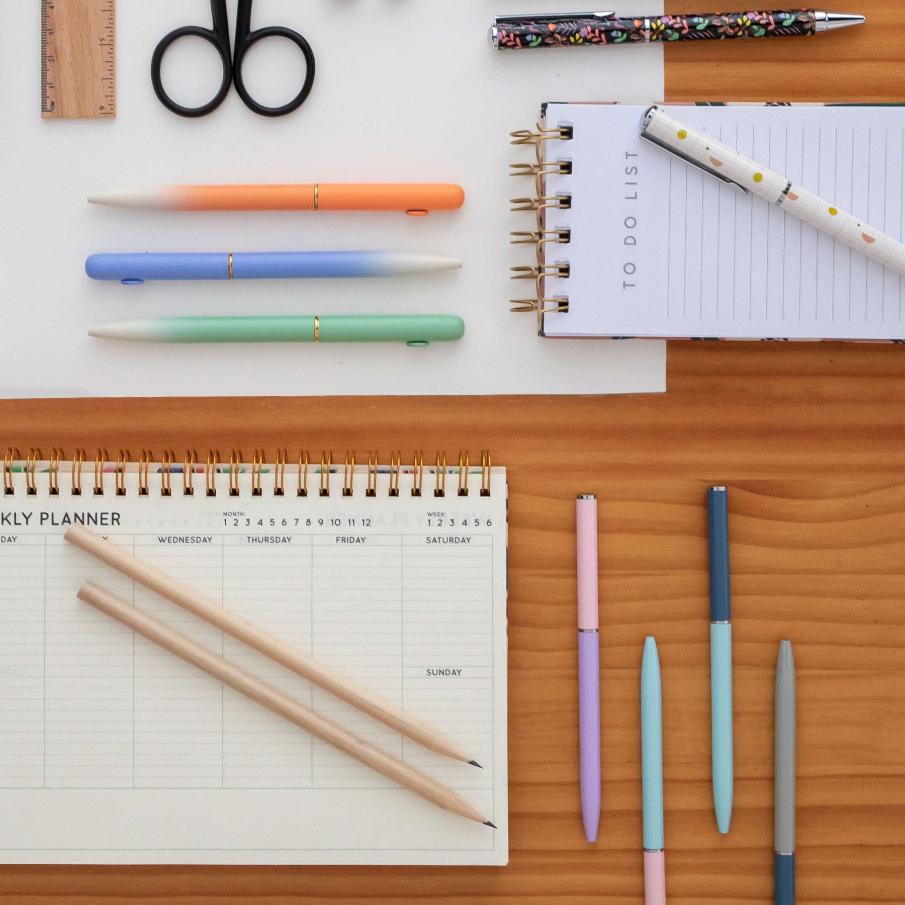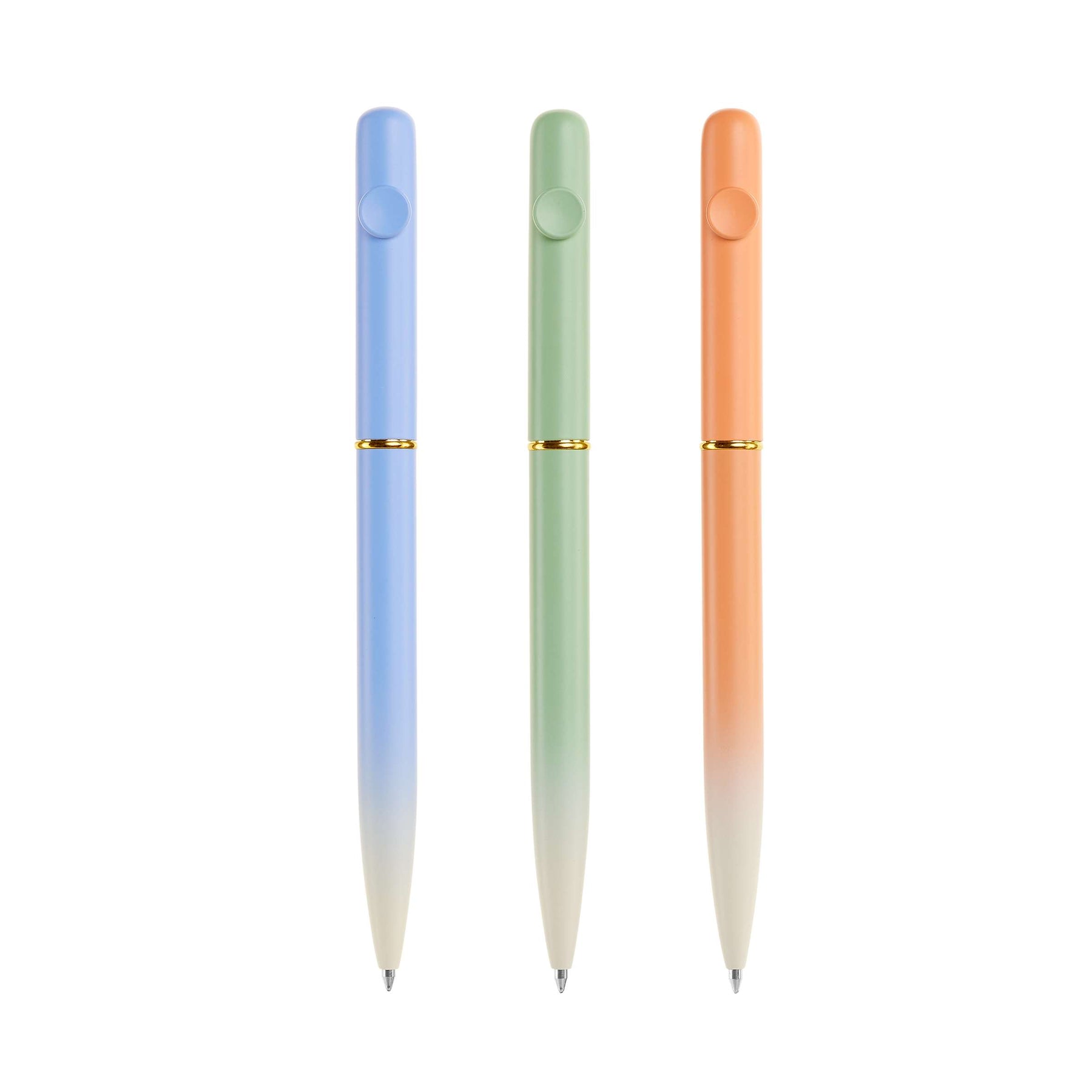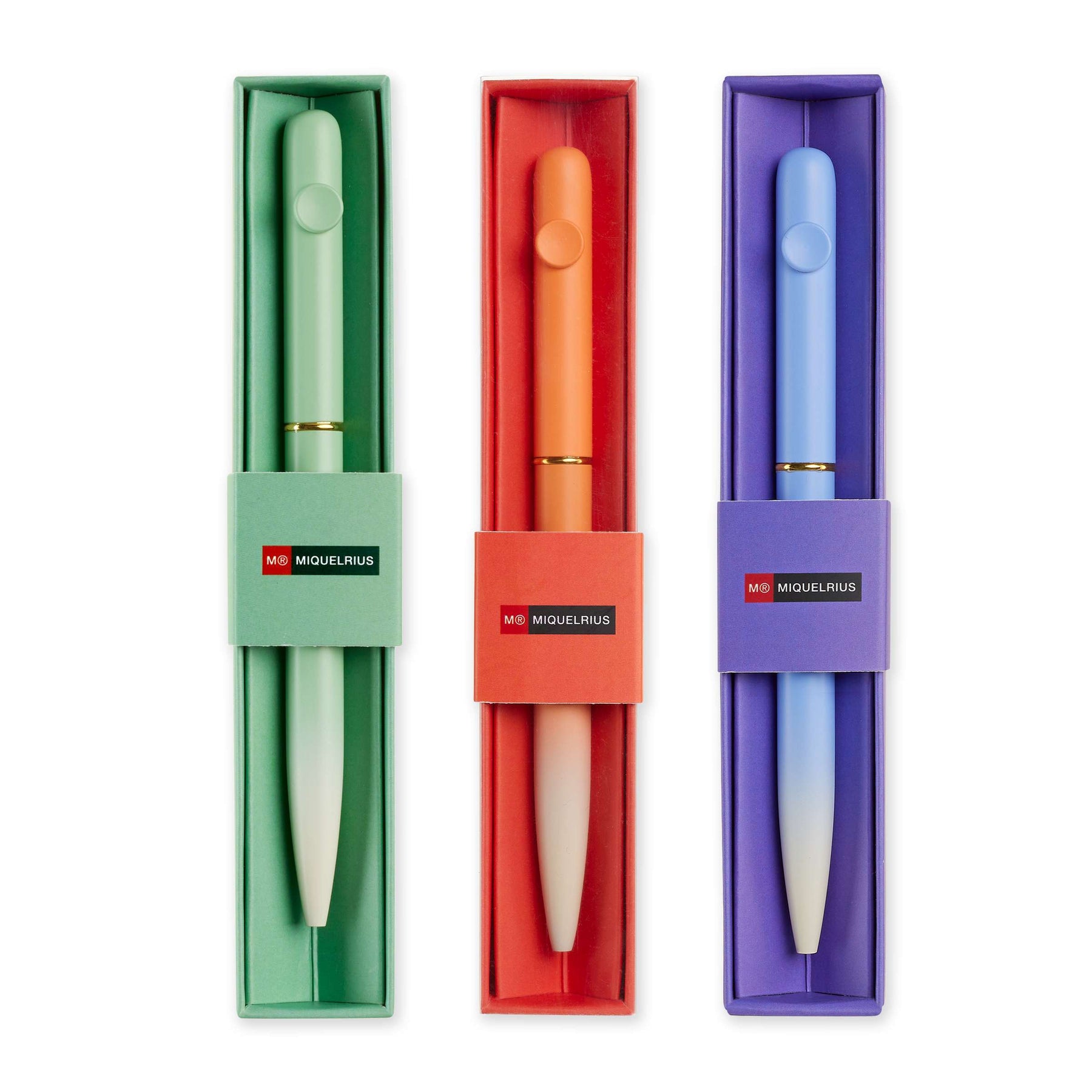 Bolígrafos con un diseño degradado que enamora a primera vista. Los tonos se deslizan suavemente por toda la superficie, creando un efecto visual único y cautivador. Cómodos de sostener, con tinta de calidad y ese toque de color que hace que escribir sea más divertido.