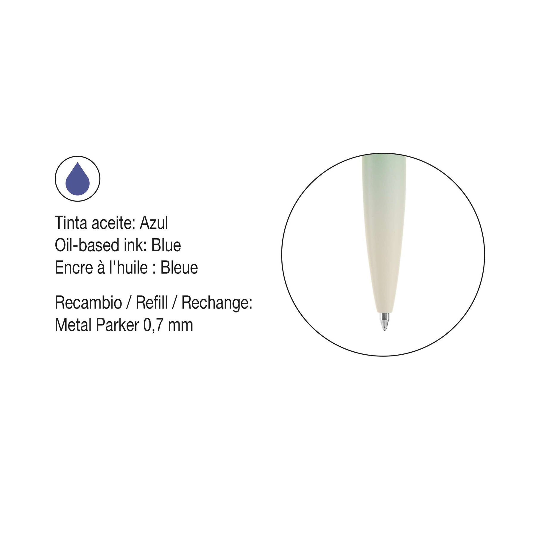 Tinta: Aceite azul. Recambio: Metal Parker 0,7 mm