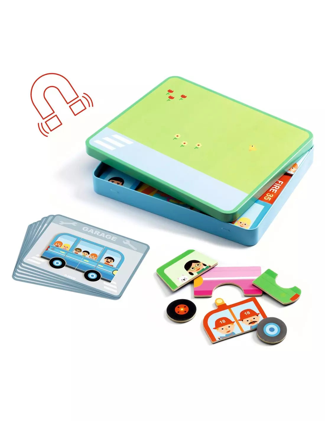 ¡Diversión magnética sobre ruedas! Este juego combina madera natural con imanes potentes para crear una experiencia interactiva única. Los peques colocan las piezas magnéticas sobre la caja metálica siguiendo las 12 tarjetas de vehículos, eligiendo el lado correcto en cada desafío. Perfecto para desarrollar concentración, coordinación y lógica mientras se divierten. Un juguete educativo que engancha a grandes y pequeños.