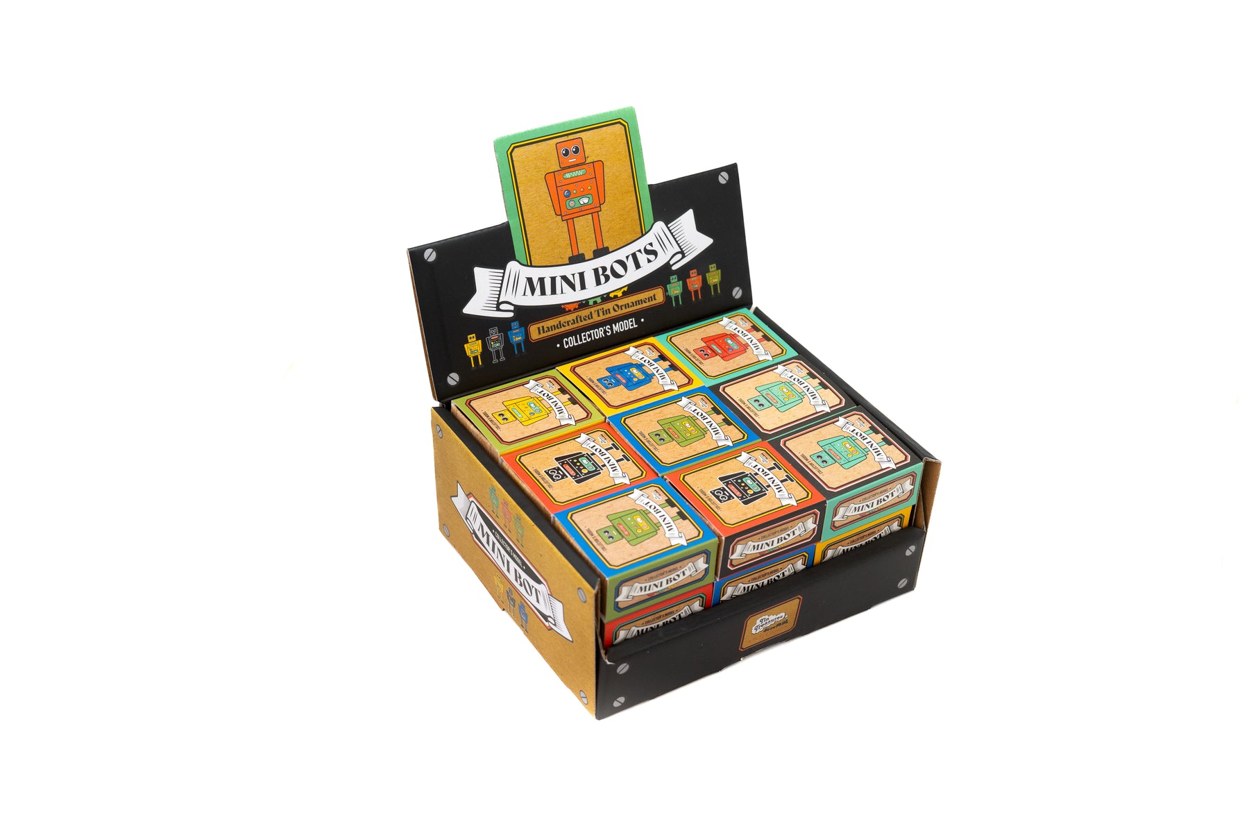 Descubre nuestros Mini robots de lata, una colección retro de 6 modelos únicos que transportan la nostalgia de los juguetes clásicos. Cada robot viene presentado en su propia mini cajita, perfecto para coleccionistas y amantes de lo vintage. Diseñados con detalles meticulosos y acabados en lata, son ideales para decorar, coleccionar o regalar. ¡Completa tu colección y disfruta de estos pequeños tesoros mecánicos!