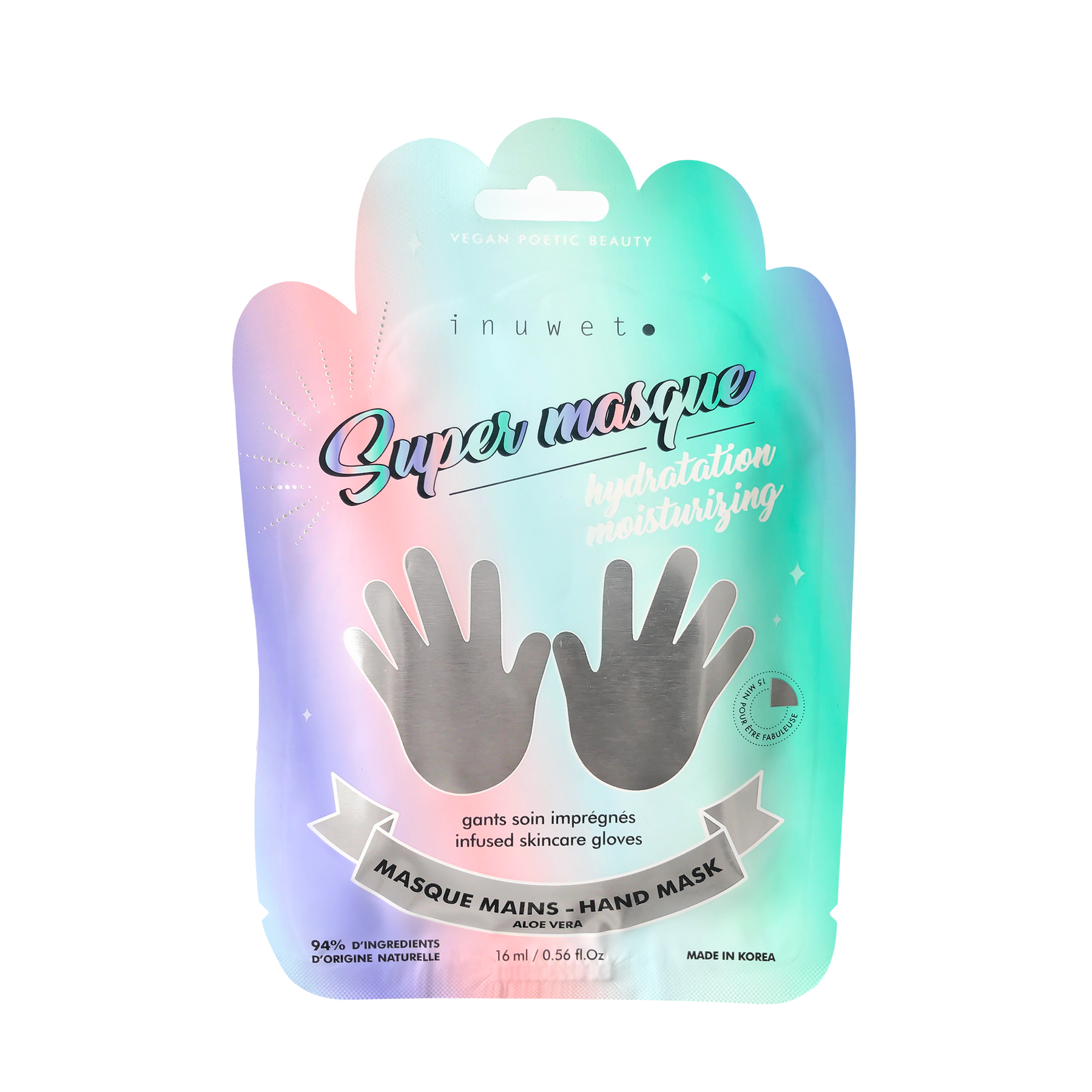 Un parche para ojos de biocelulosa garantiza una perfecta adherencia y una óptima difusión de los principios activos: la goma de melocotón ayuda a suavizar y reducir las arrugas. Además, incluye una mascarilla hidratante para manos en forma de guantes impregnados, adaptada a las necesidades específicas de la piel gracias a un cóctel de extractos nutritivos de aloe vera, coco, mango y almendra dulce. Y como extra: la bolsita de nailon acolchada rosa pálido, con su cinta de cierre amarillo neón, es perfecta para el invierno.