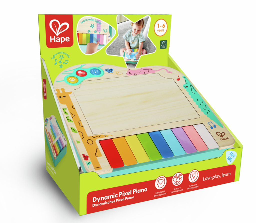 El galardonado Pixel Piano es una instrument multifuncional diseñado para el desarrollo sensorial y cognitivo. Con tres atractivos modos, permite a los niños explorar los tonos del piano, descubrir sonidos de animales pixelados y seguir las teclas iluminadas para aprender melodías. Con colores vibrantes en las teclas, luces interactivas y control de volumen, el Pixel Piano crea un entorno seguro y divertido para que los músicos en ciernes den rienda suelta a su creatividad al tiempo que mejoran la motricidad fina, el reconocimiento de colores y el ritmo.