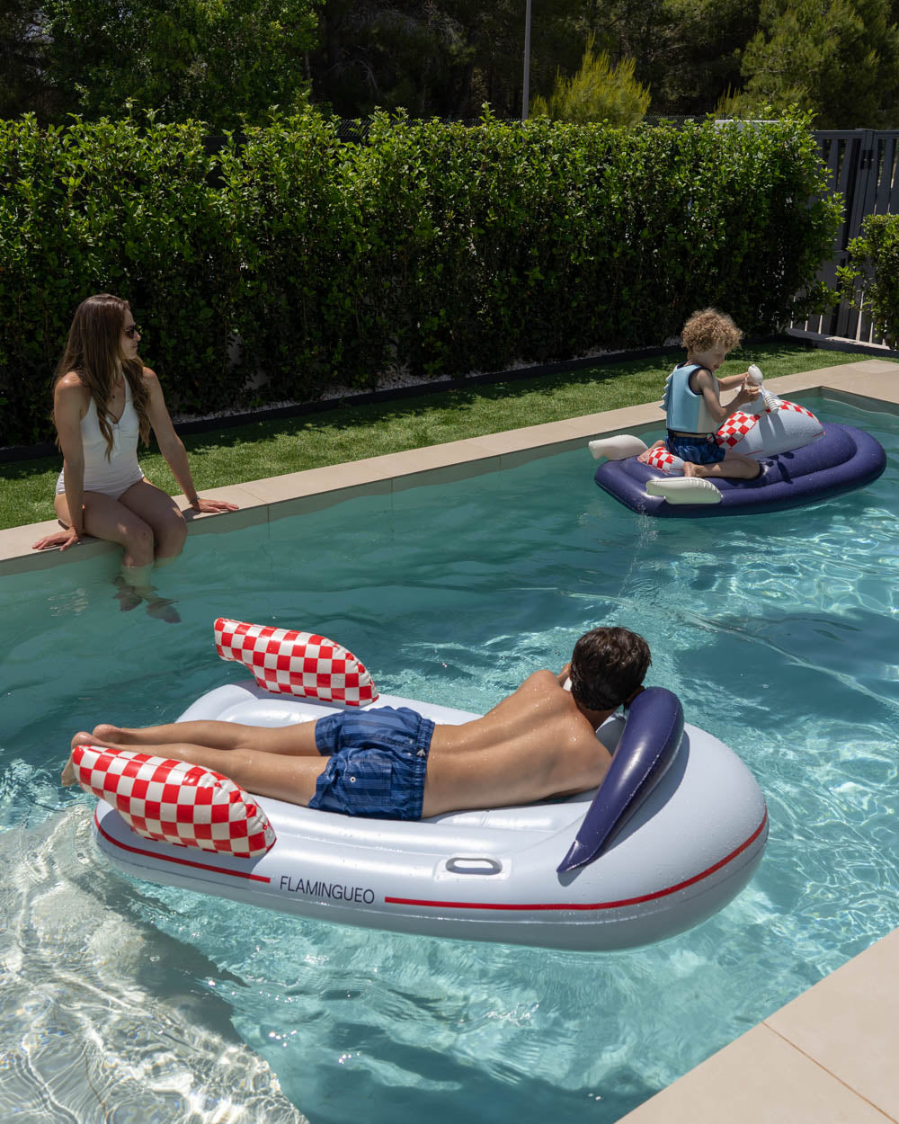 ¡Nuevos flotadores infantiles! Con diseño de moto de agua espacial en color azul, es ideal para horas de juego en la piscina o en la playa ya que incluye pistola de agua por bombeo integrada para diversión intergaláctica. ¡Diversión asegurada en verano para los más peques!