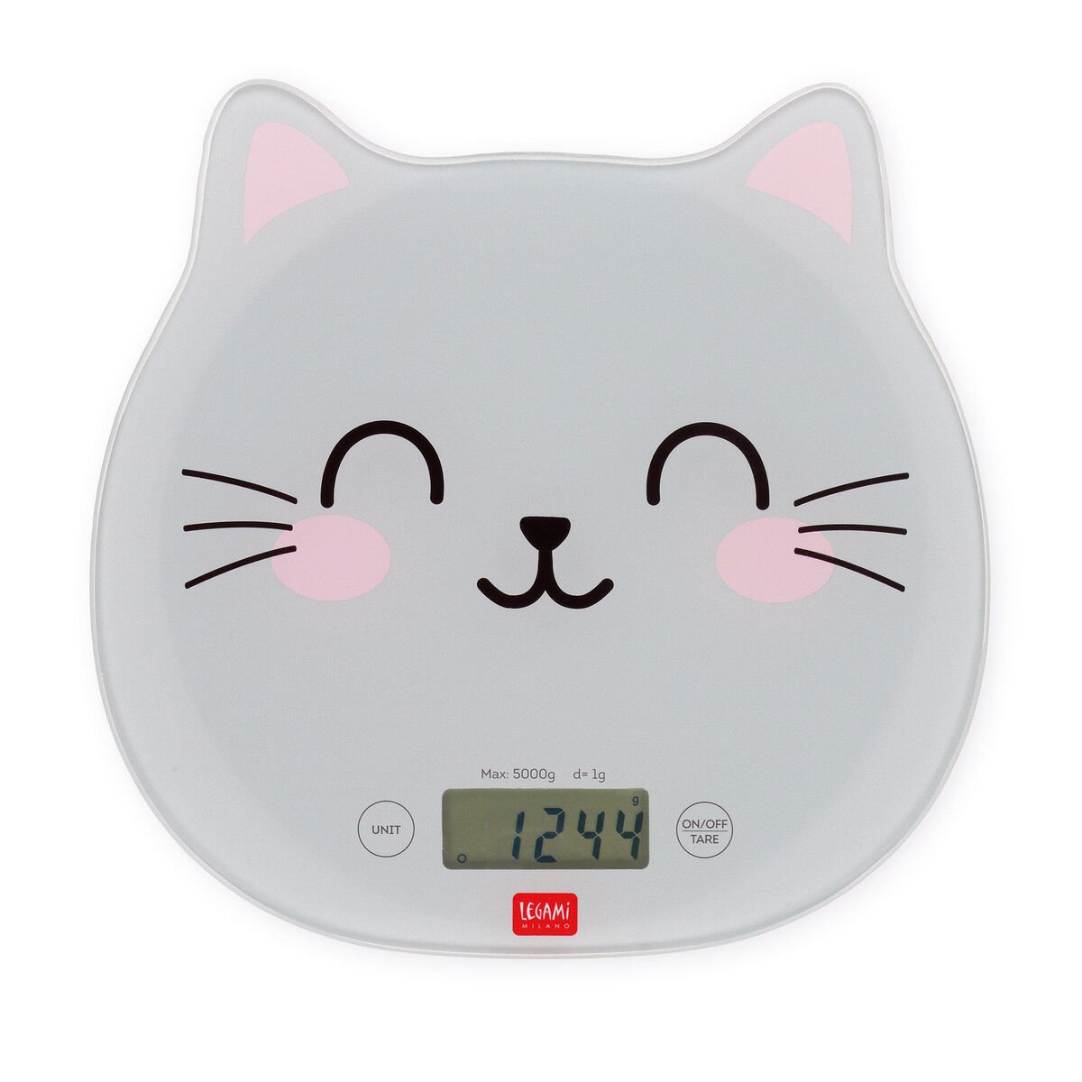 Si te pesa la falta de precisión, deja que pese por ti la Báscula Digital de Cocina - Kitchen Scale - Kitty de Legami. Una báscula electrónica para pesar alimentos que combina funcionalidad con un diseño adorable.