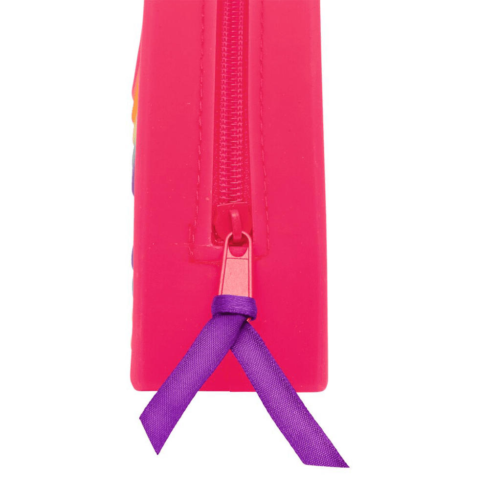 Rojo, naranja, amarillo, verde, azul y morado. ¡Un arcoíris! Con este diseño genial, tu estuche destacará. Ya sea en la escuela o en casa: guarda bolígrafos, reglas, borradores y más en este estuche arcoíris. Su resistente material mantiene seguros pequeños objetos de valor, chucherías y útiles de escritura, listos para usar. Colorido y vibrante: un verdadero punto de atracción para cualquier escritorio. ¡Organizar y ordenar es fácil y divertido!