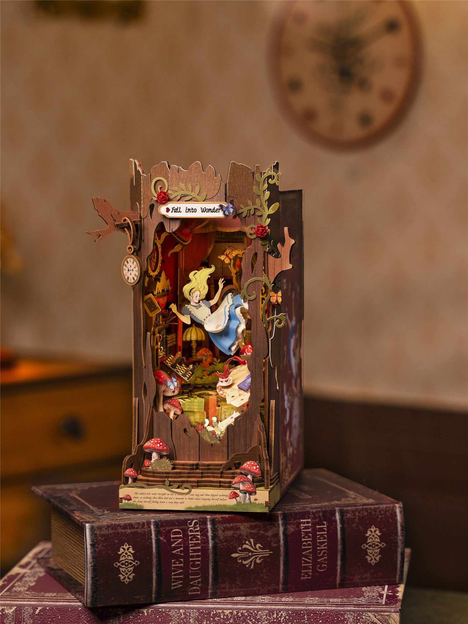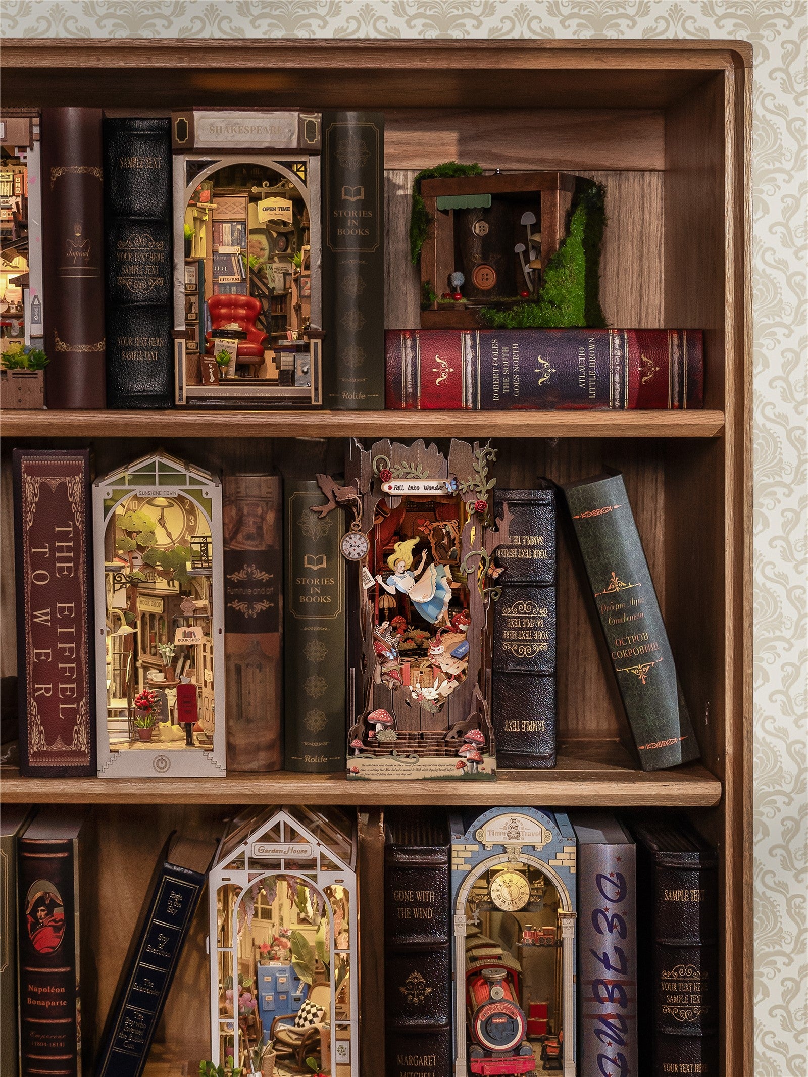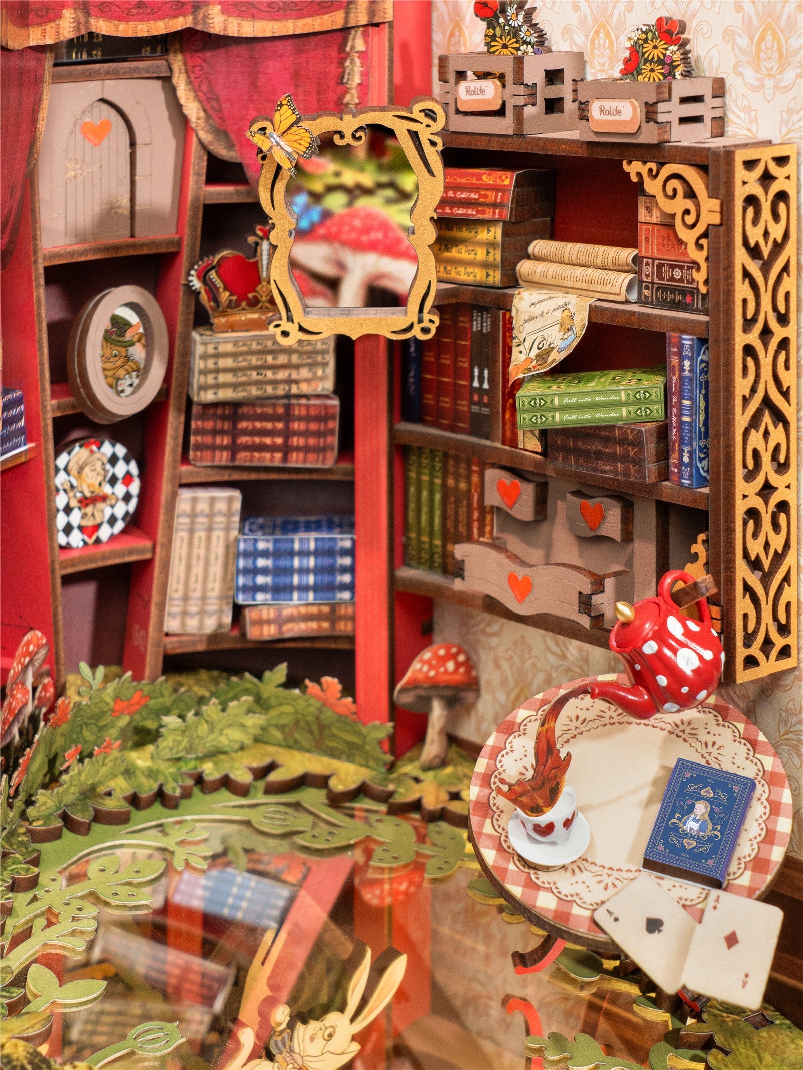 Adéntrate en un mundo de fantasía con el Rolife Fall into Wonder, un diorama DIY para estanterías que transforma cualquier librería en un portal mágico. Con un tronco de árbol como fachada, elementos retro, espejo infinito, setas interactivas y luz LED integrada, este kit DIY estimula la creatividad y ofrece horas de diversión. Fácil de montar gracias a sus piezas numeradas, es ideal como regalo, decoración o pasatiempo que combina imaginación, paciencia y orgullo de crear algo único con tus propias manos.