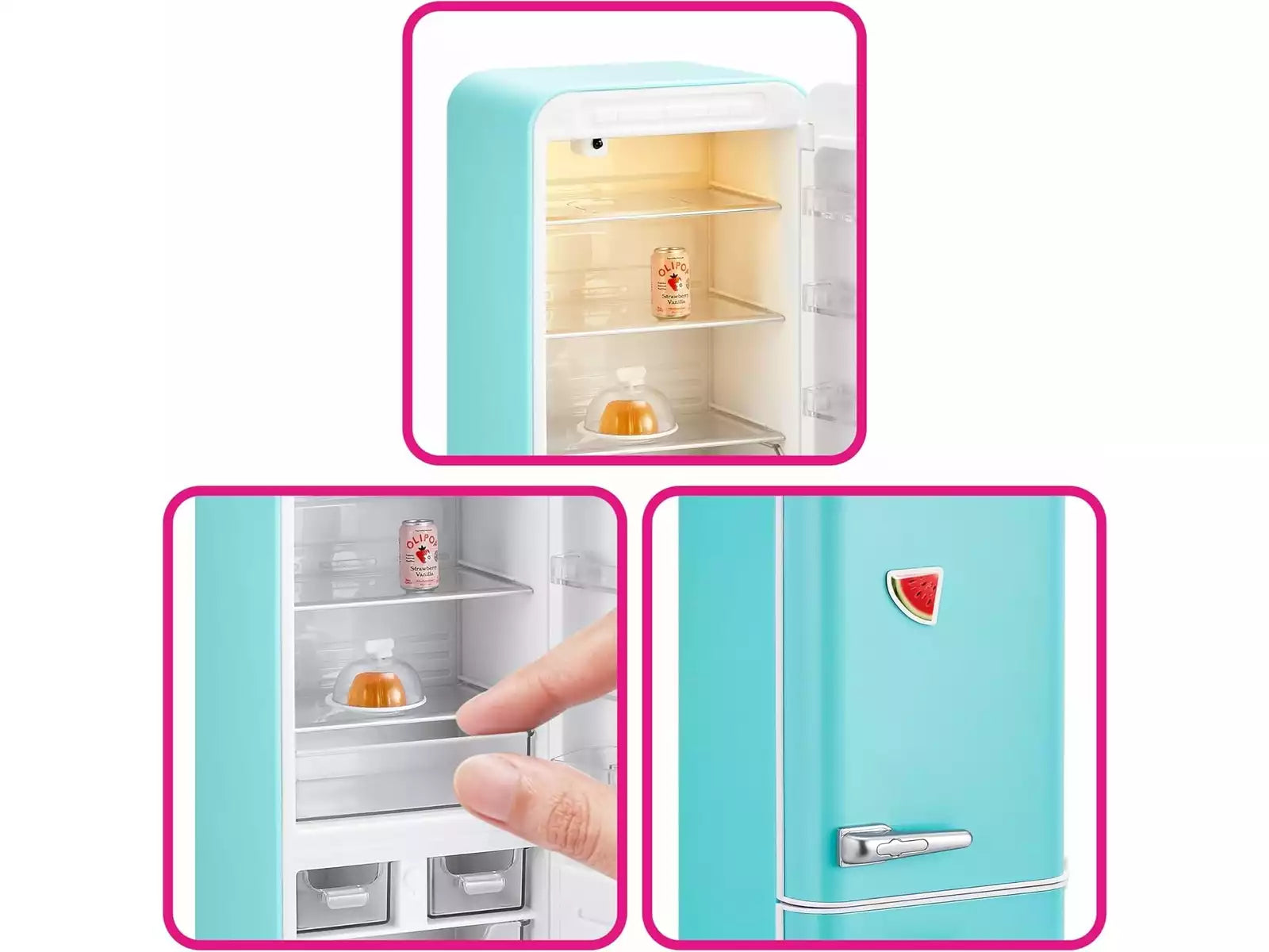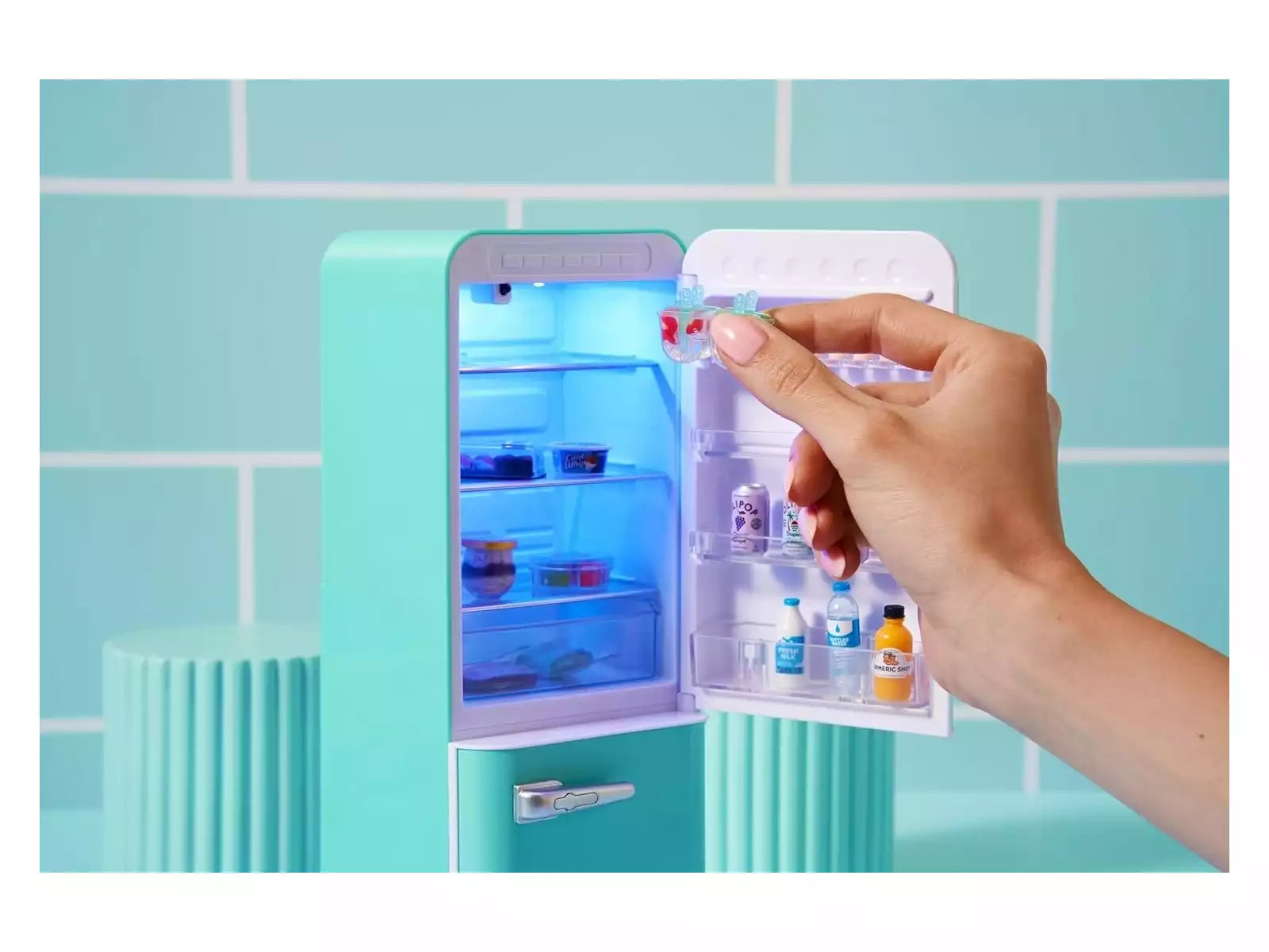 El frigorífico cuenta con luz UV, lo que le aporta mayor realismo al juguete. En esta colección encontrarás alimentos de todo tipo para personalizar tu nevera. Son artículos coleccionables y en sus cápsulas encontrarás artículos al azar que podrás intercambiar con tus amigos, si los tienes repetidos.