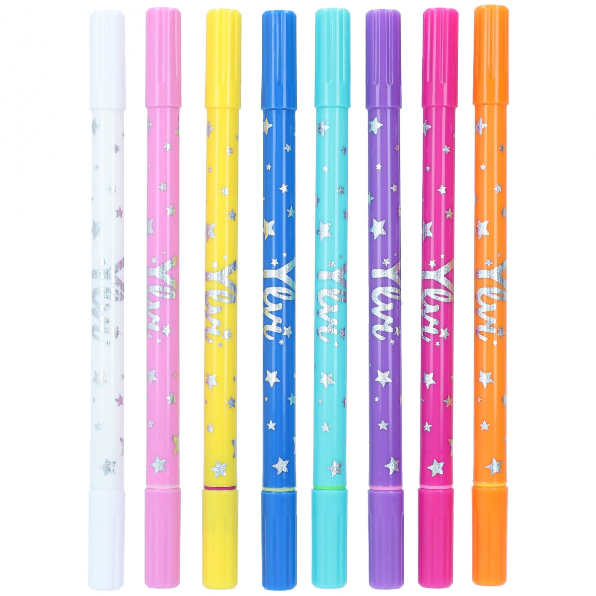 Para fans de los unicornios con mucha creatividad. Este cuaderno de Ylvi se compone de 30 hojas impresas a dos caras para disfrutar a lo grande coloreando motivos preciosos y llenos de fantasía. El set incluye 7 rotuladores de colores de punta doble (1 punta ancha de 0,5-3 mm y una fina de 1 mm) y un rotulador mágico capaz de transformar los colores de los rotuladores como por arte de magia. ¡Así los 7 colores iniciales se convierten en 14!